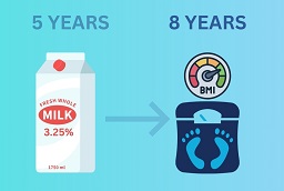 Drinking whole cow’s milk in early childhood may be linked to lower obesity risk later
