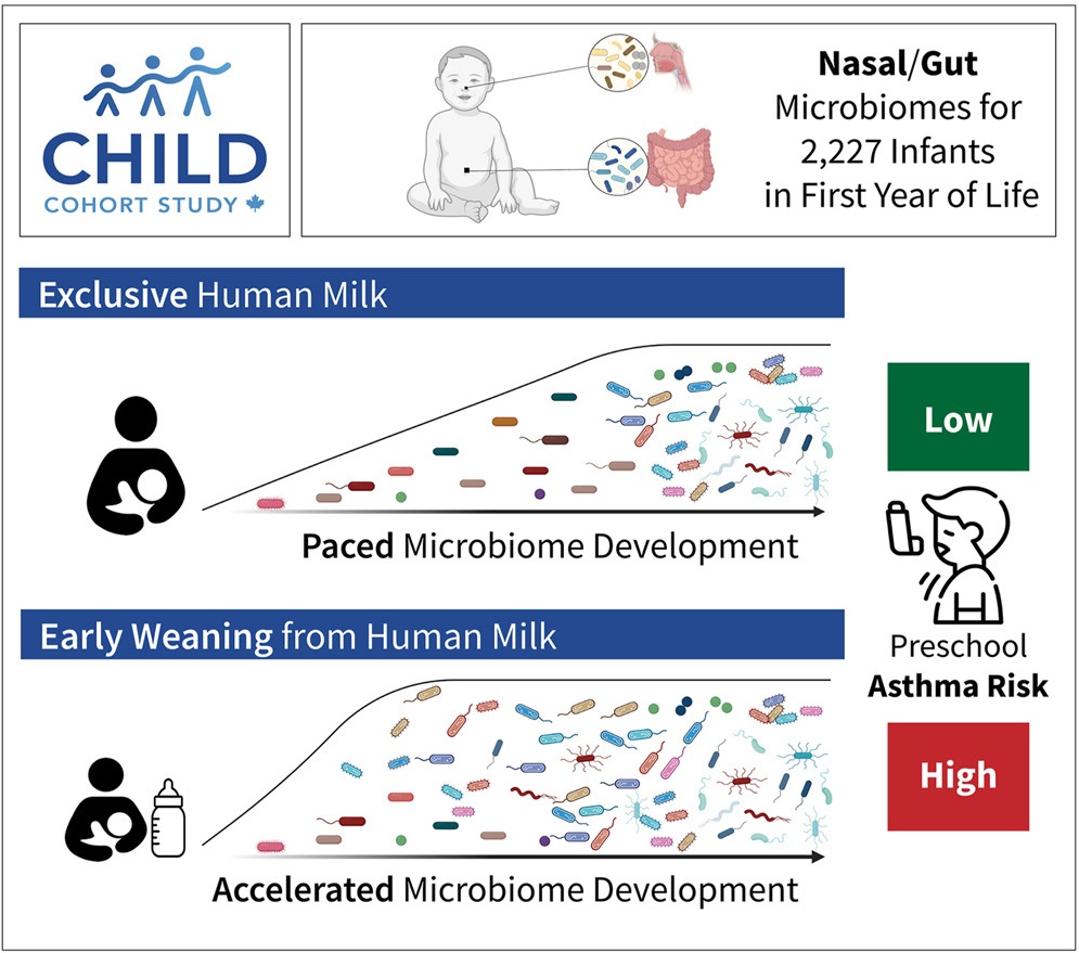 New CHILD research provides compelling evidence that breastfeeding influences the composition and function of an infant’s microbiome, which in turn plays a crucial role in that child’s later respiratory health.