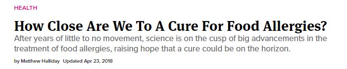“How Close Are We to a Cure for Food Allergies?” was published online on April 23, 2018.
