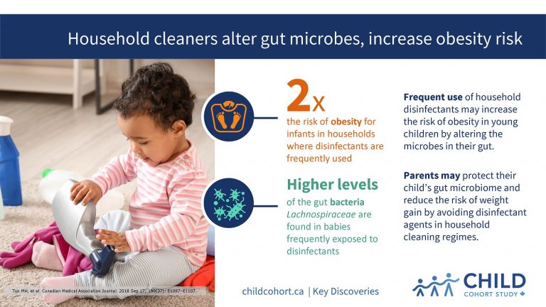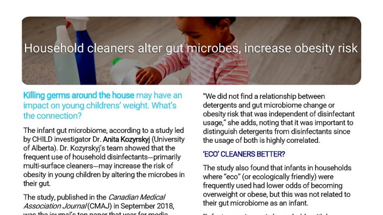 “Our findings suggest that parents may help to protect their child’s gut microbiome and reduce the risk of weight gain and obesity by avoiding disinfectant agents in household cleaning regimes,” says Dr. Kozyrskyj.