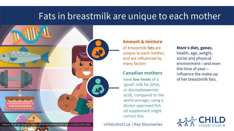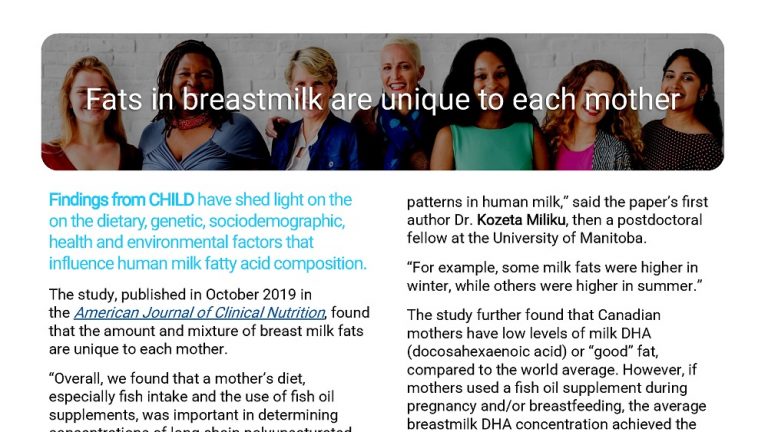 Findings from CHILD have shed light on the on the dietary, genetic, sociodemographic, health and environmental factors that influence human milk fatty acid composition.