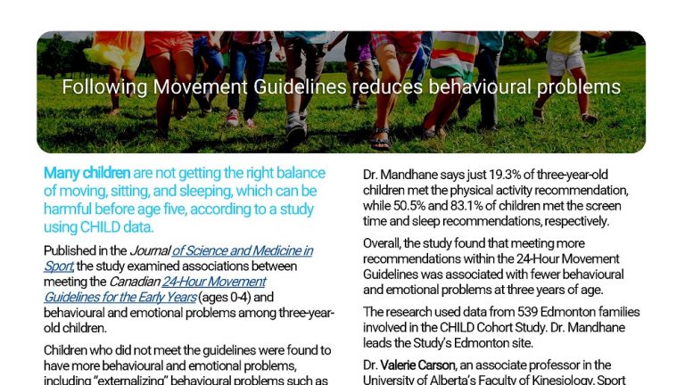 Many children are not getting the right balance of moving, sitting, and sleeping, which can be harmful before age five, according to a study using CHILD data.