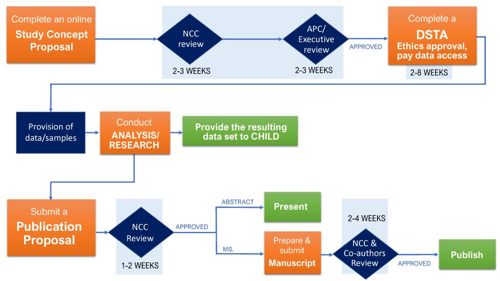 Step two: If the Study Concept Proposal meets all the criteria for the administrative review, the NCC will transfer it to the CHILD Access & Publications Committee (APC), and the CHILD Executive Committee (Executive), for a complete assessment.