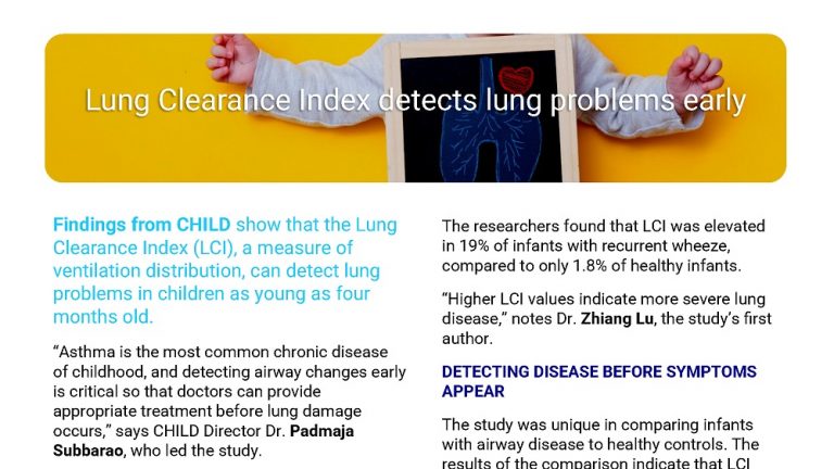 Findings from CHILD show that the Lung Clearance Index (LCI), a measure of ventilation distribution, can detect lung problems in children as young as four months old.