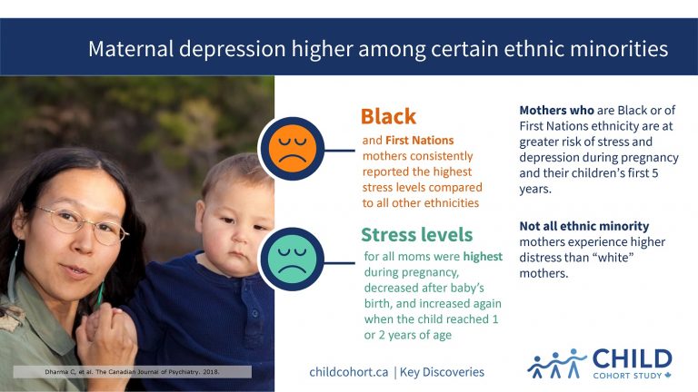 Mothers who are Black or of First Nations ethnicity are at greater risk of experiencing stress and symptoms of depression during pregnancy and their children’s first five years, according to CHILD research.