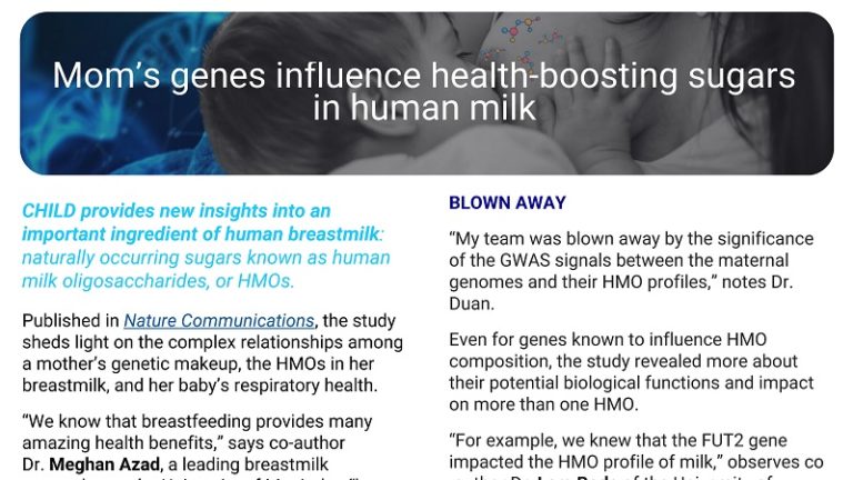 New first-of-its-kind research from CHILD provides insights into an important ingredient of human breastmilk: naturally occurring sugars known as human milk oligosaccharides, or HMOs.