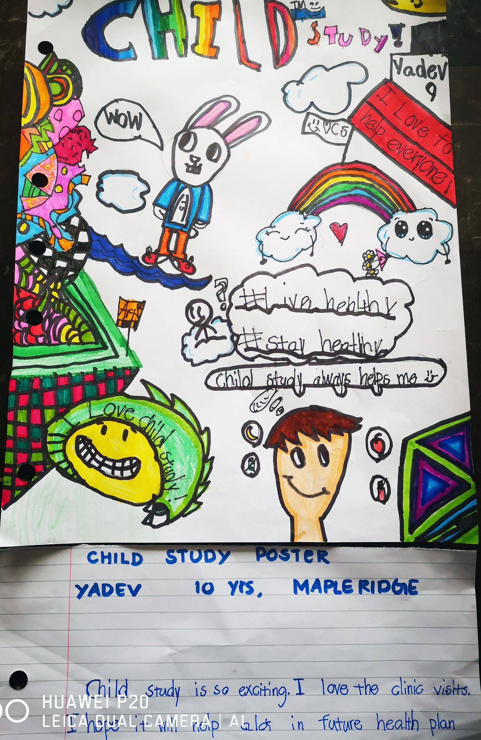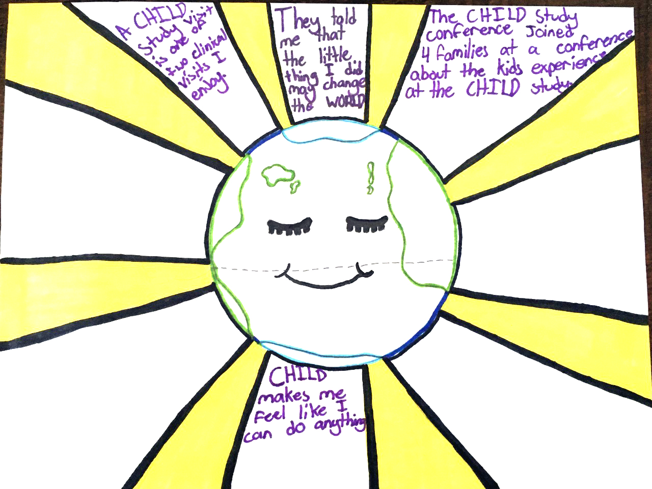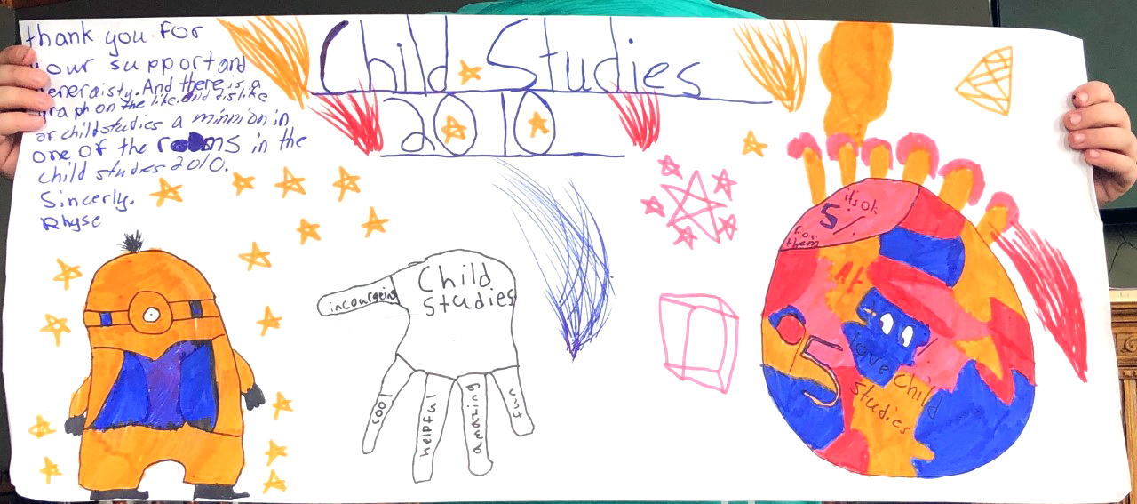 I loved your concept – how you showed the different parts of the CHILD study. I liked your colourful message about “kids helping kids”. Great work!