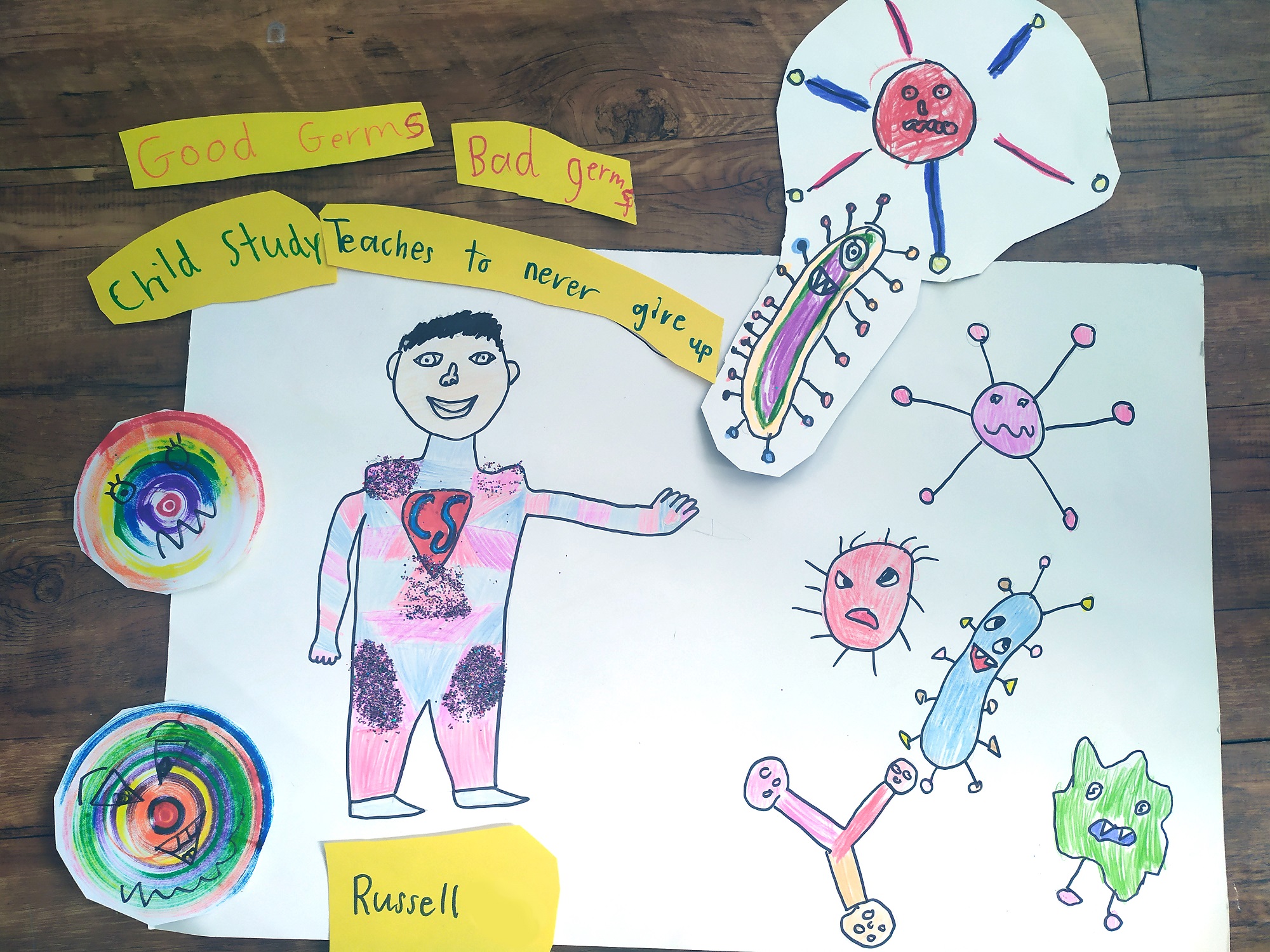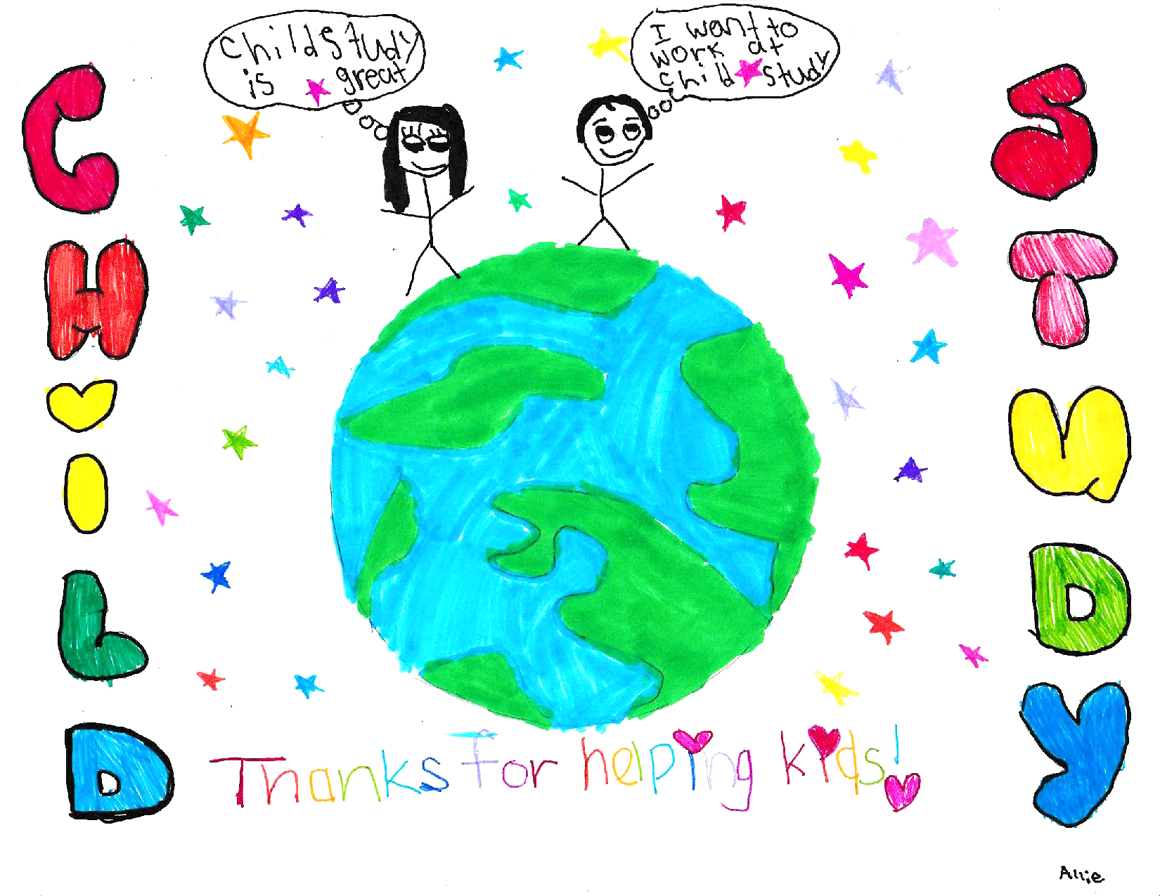 I loved your concept – how you showed the different parts of the CHILD study. I liked your colourful message about “kids helping kids”. Great work!