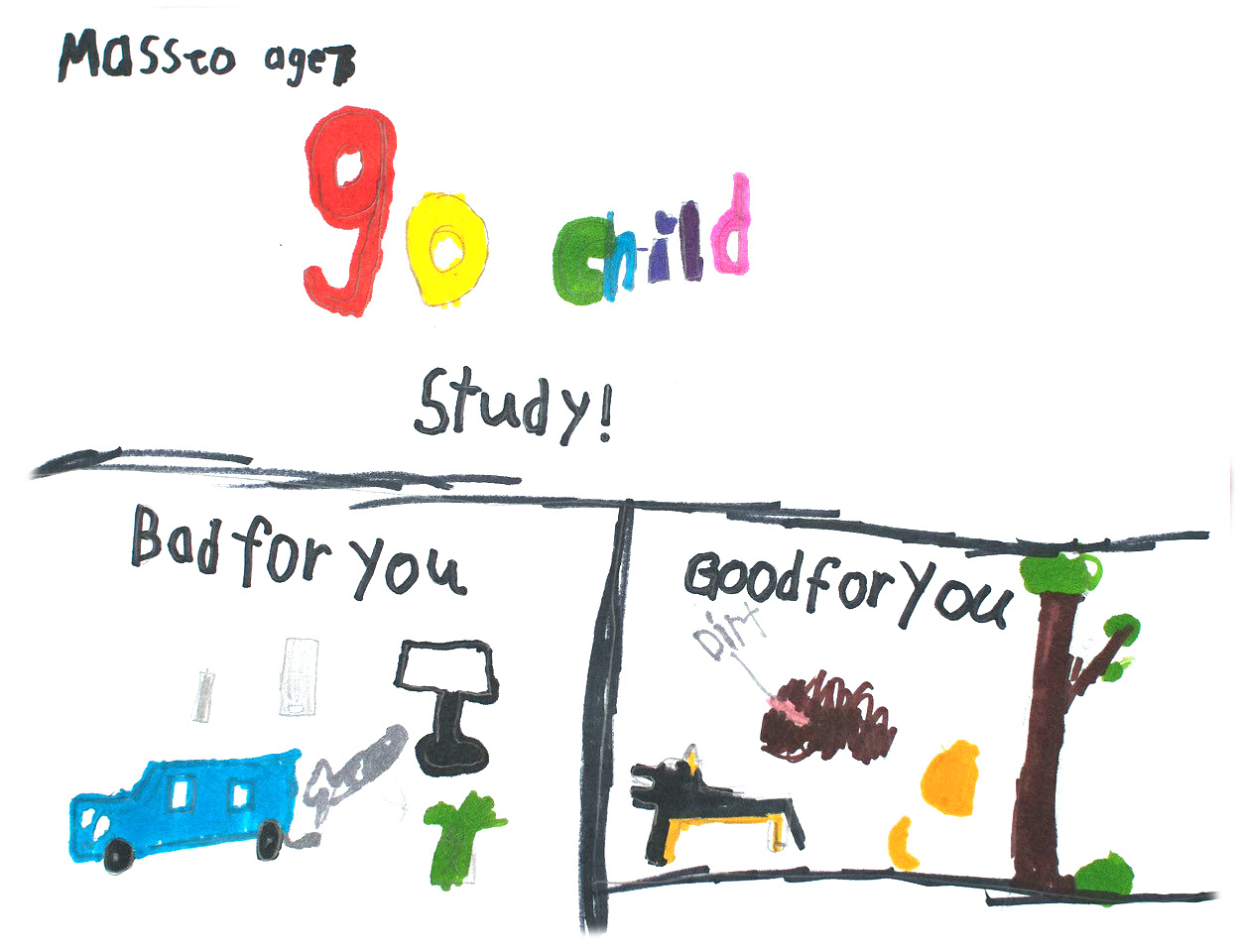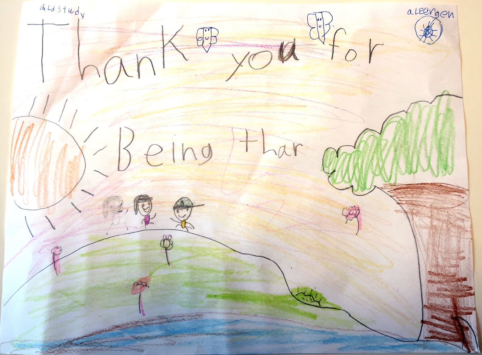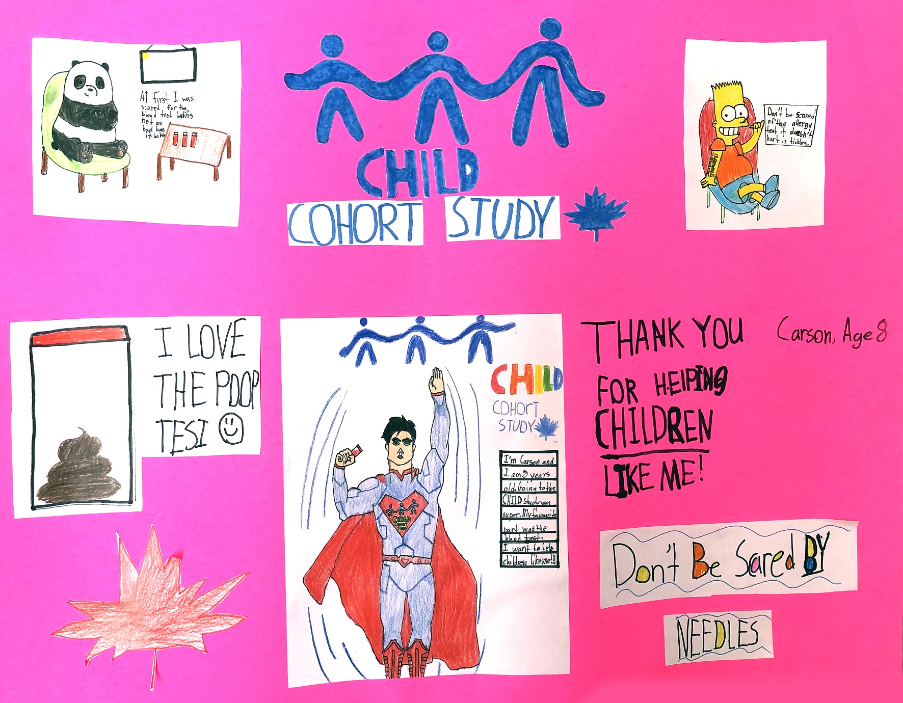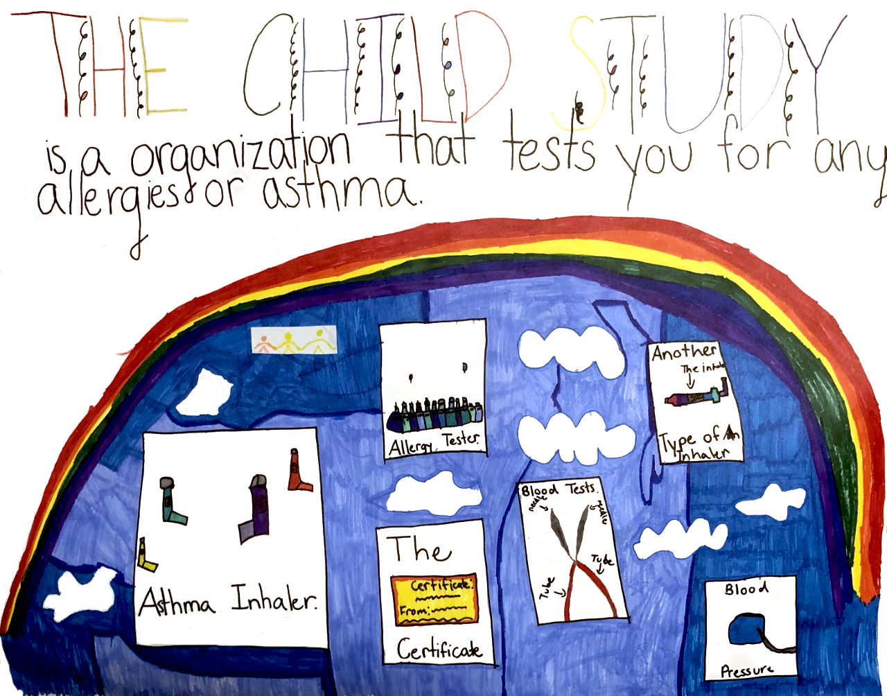 My poster is about all the fun things I got to do at Sick Kids Hospital for the Child Study. From my mom completing surveys to me doing breathing tests. Thank you to all the kids who are participating!