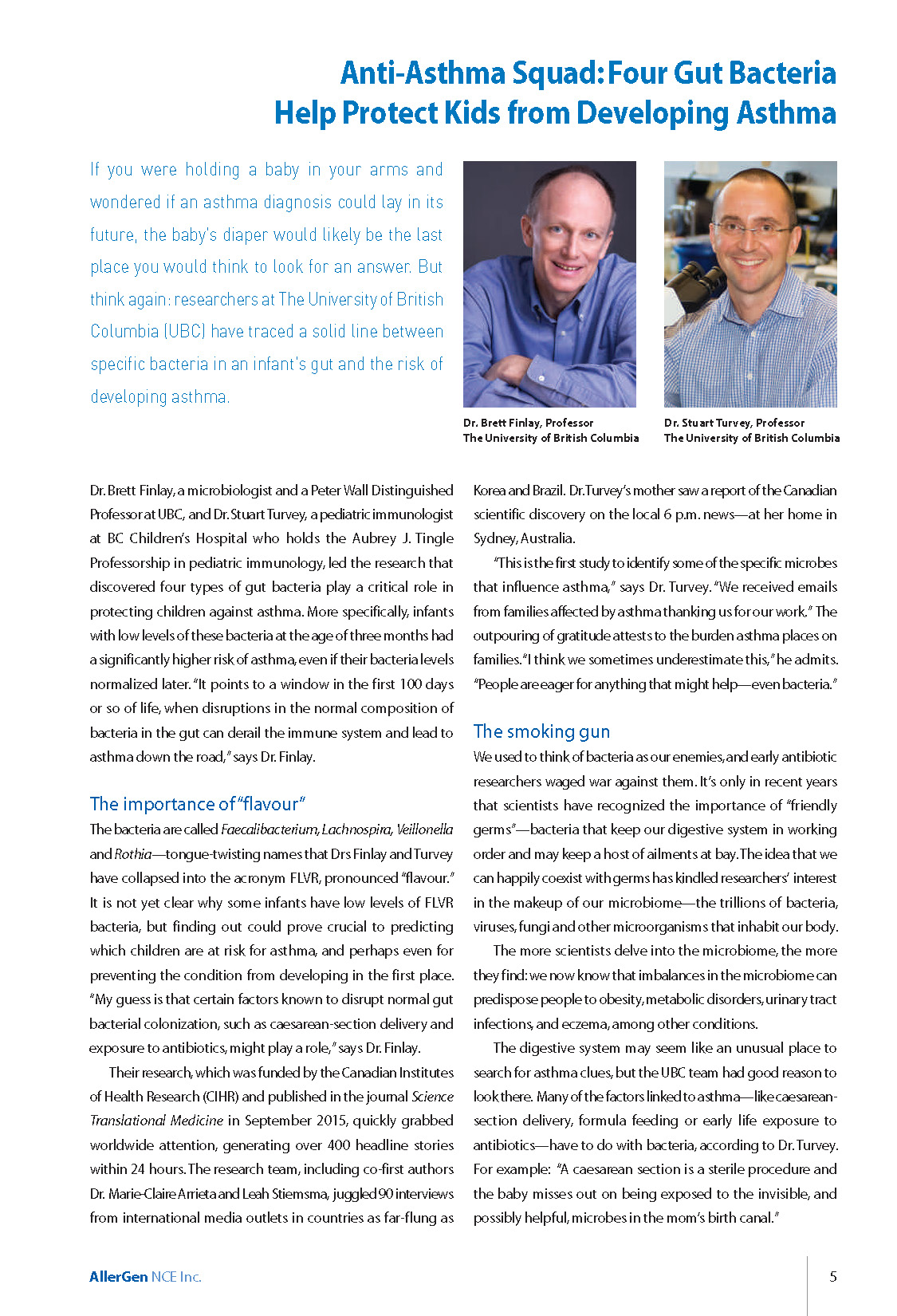 gut bacteria, microbiome, asthma, FLVR, germs, hygiene hypothesis | Brett Finlay, Stuart Turvey, Marie-Claire Arrieta, Leah Stiemsma |