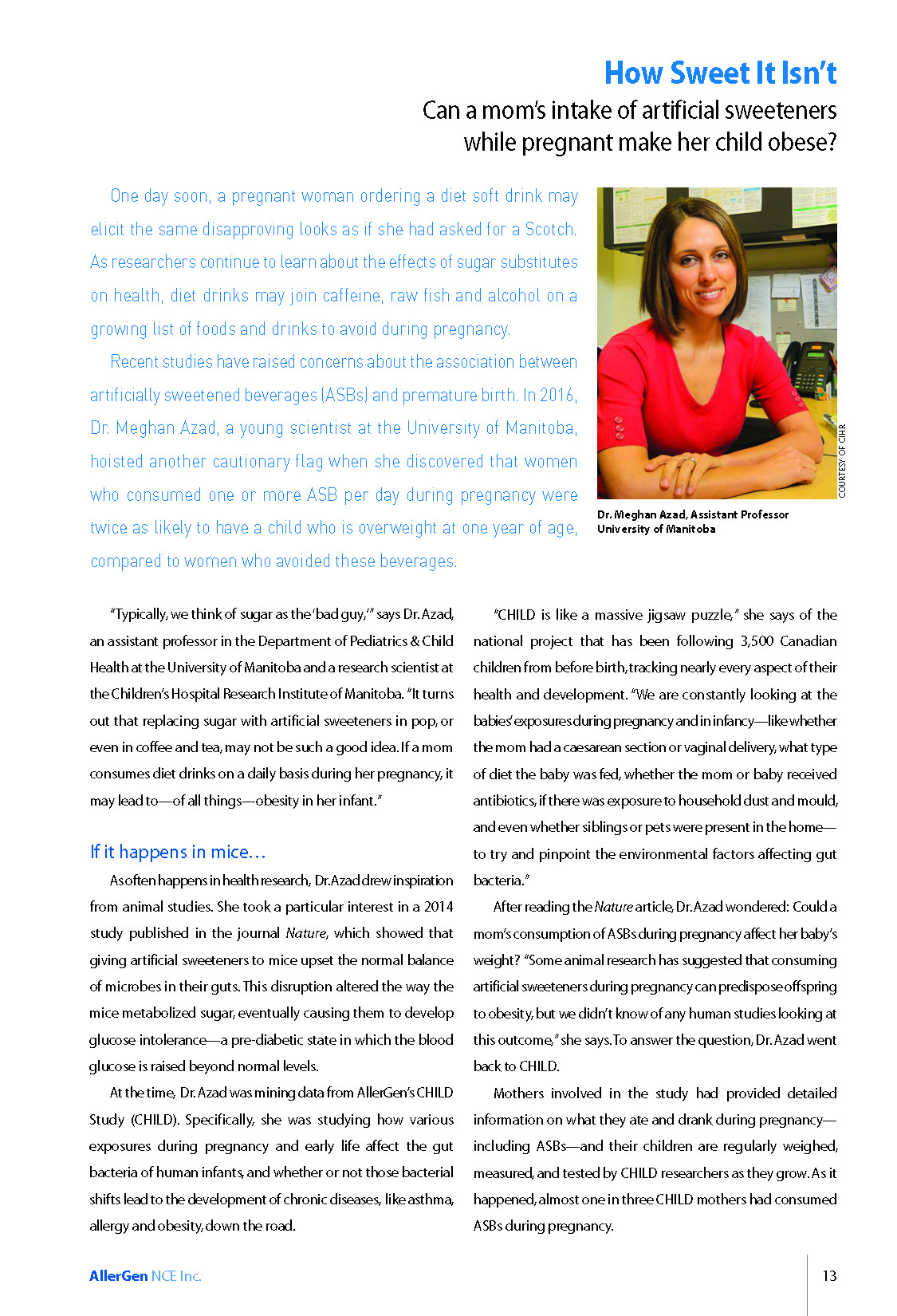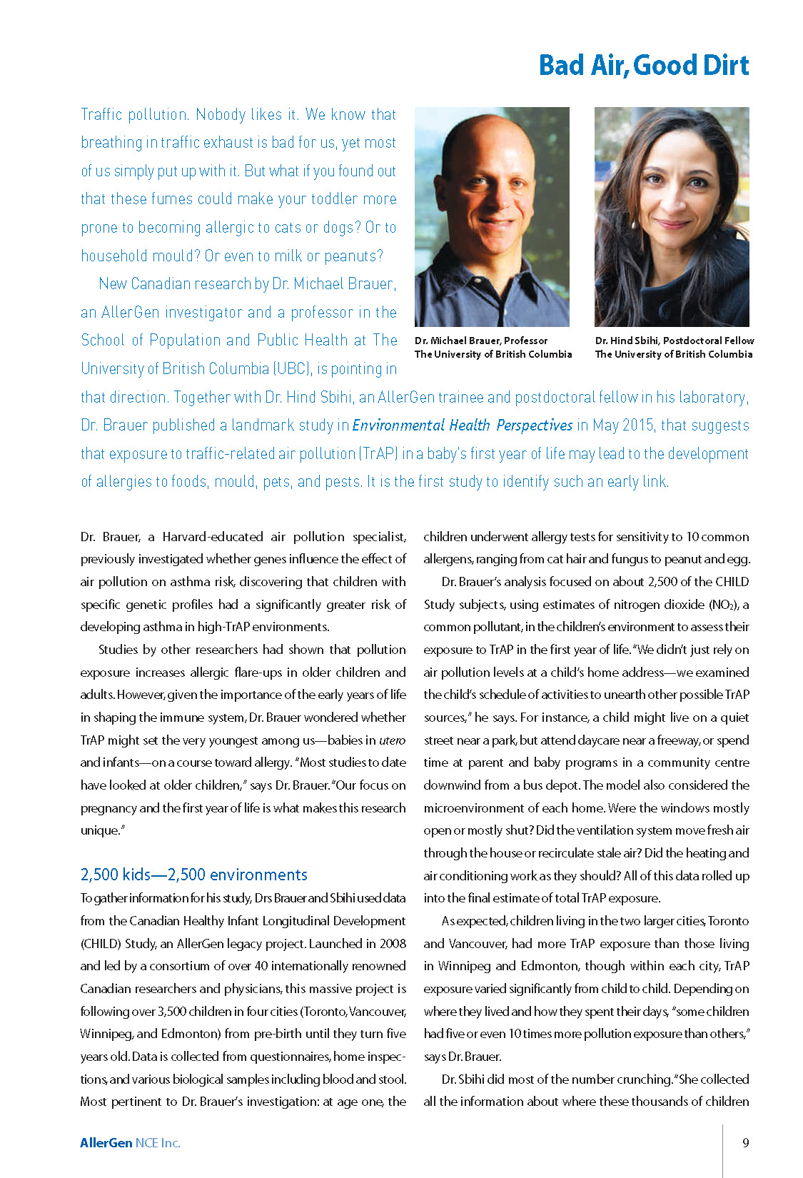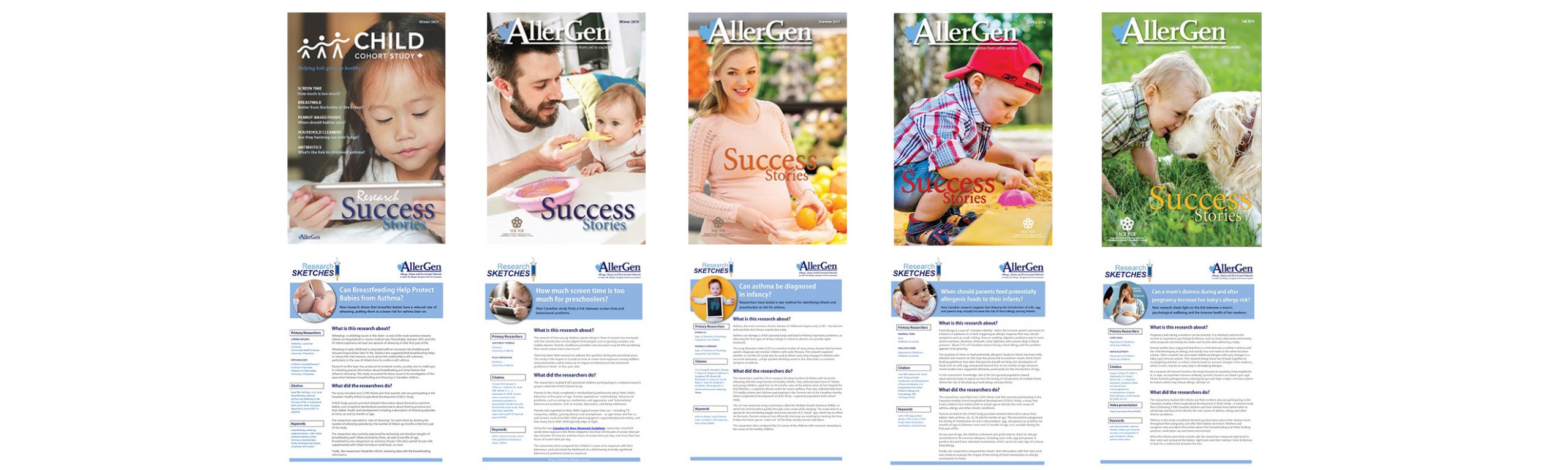 Major research results from the CHILD Cohort Study have been described in various clear-language summaries prepared for lay readers, mainly in Success Stories and Research Sketches, published by AllerGen.