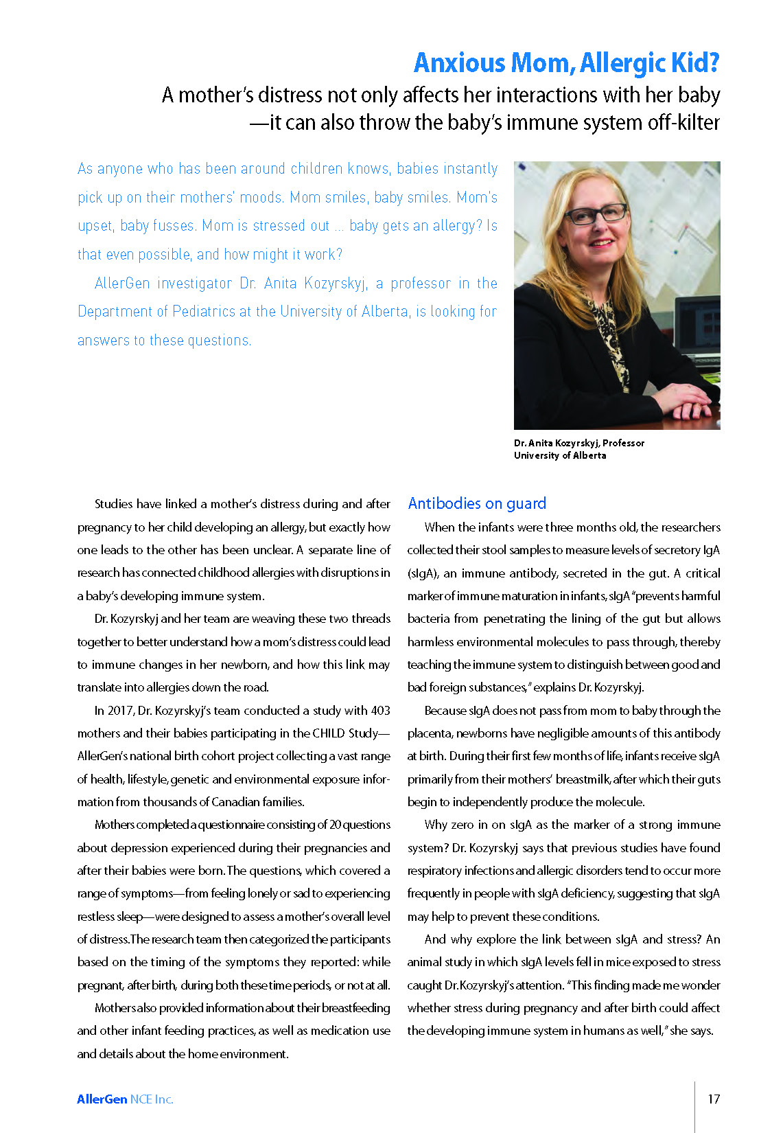 pregnant, pregnancy, prenatal, postnatal, stress, depression, anxiety, allergy risk, gut immune system, sIgA, microbiome, secretory IgA , immune antibody, gut microbiome | Anita Kozyrskyj |