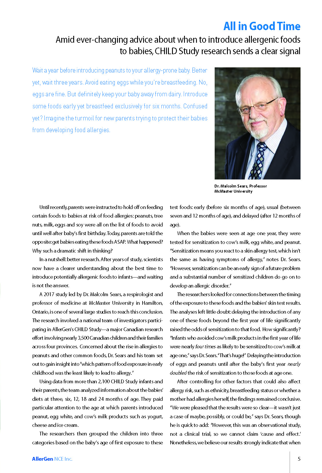 All in Good Time: Amid ever-changing advice about when to introduce allergenic foods to babies, CHILD Study research sends a clear signal |