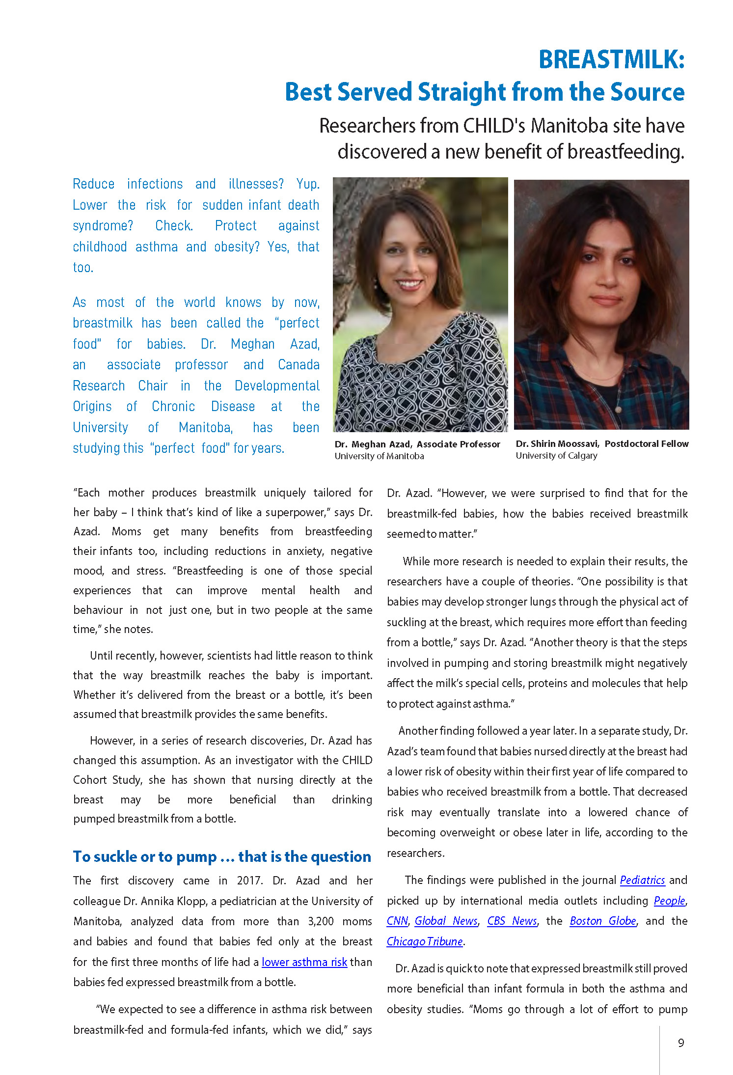 BREASTMILK: Best Served Straight from the Source – Researchers from CHILD’s Manitoba site have discovered a new benefit of breastfeeding |