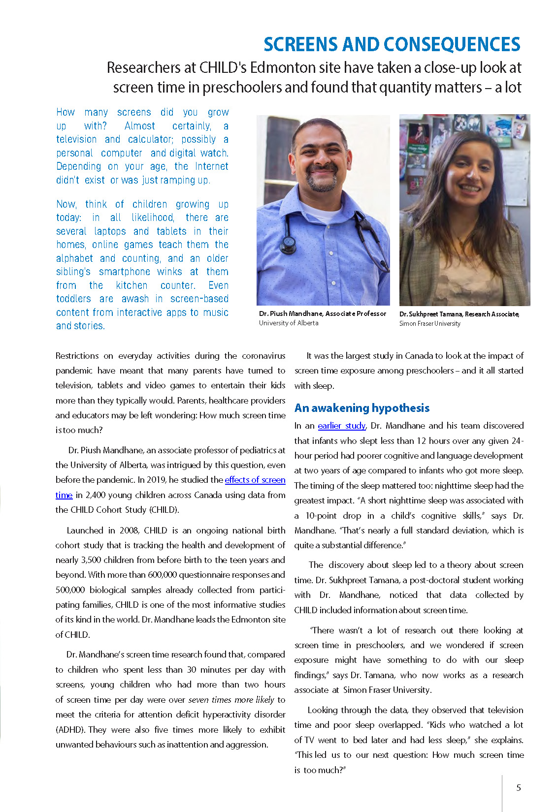 SCREENS AND CONSEQUENCES: Researchers at CHILD’s Edmonton site have taken a close-up look at screen time in preschoolers and found that quantity matters – a lot |