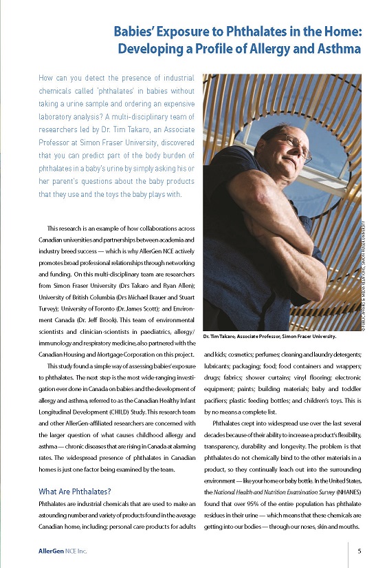 phthalates, environment, home, house, industrial chemicals, household products, exposures, allergy, asthma | Tim Takaro, Michael Brauer, Stuart Turvey, James Scott, Jeff Brook, Ryan Allen |