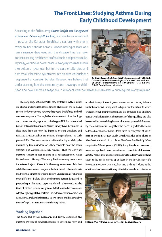early-life immune system, allergy, asthma, environment, phenotyping | Stuart Turvey, Tobias Kollmann, Kathleen Wee |