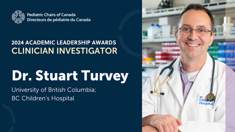 The Pediatric Chairs of Canada (PCC) has announced that Dr. Stuart Turvey, Co-Director of CHILD and leader of the Study’s Vancouver site, is a 2024 recipient of its Pediatric Academic Leadership Award (Clinician Practitioner).