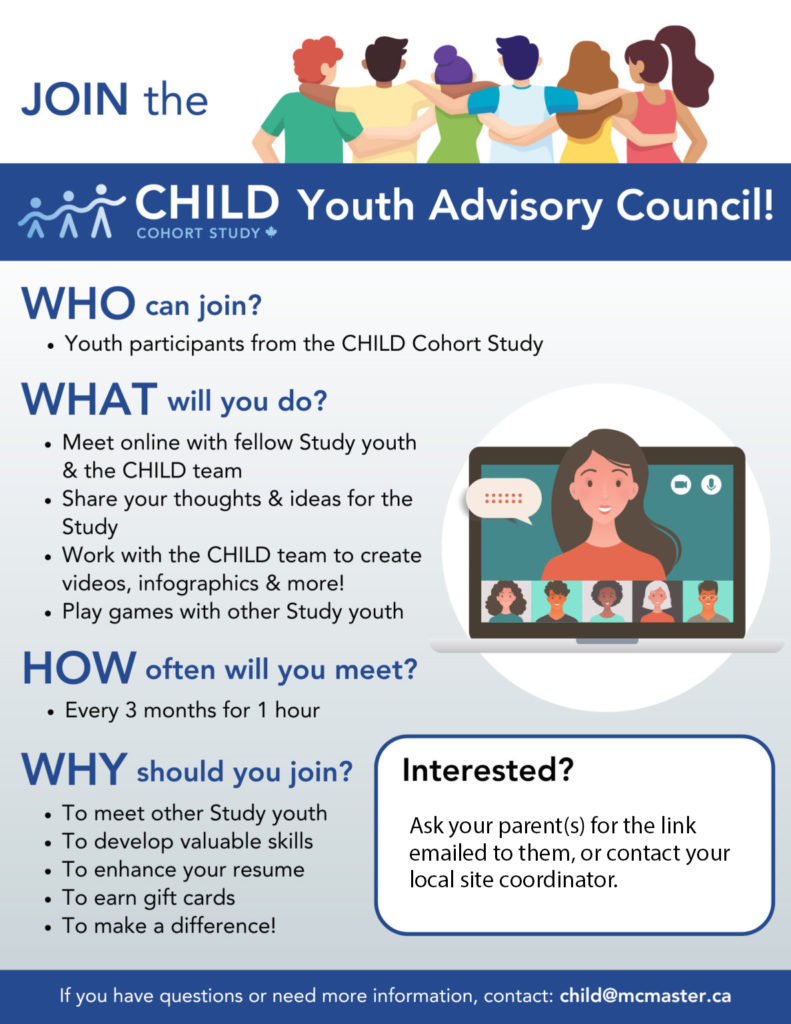 Any youth participant in the Study can apply to join. Council members will meet online quarterly for exchanges facilitated by CHILD staff.